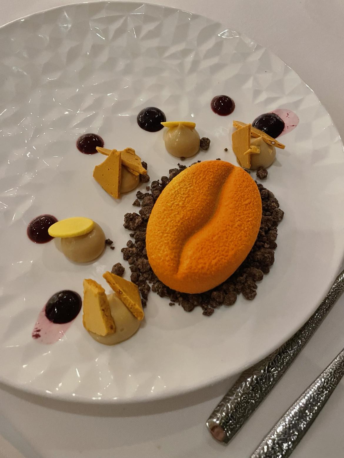 You might have already guessed which dessert I chose based on the picture, but just to clarify, I decided on the Caramel Cappuccino Cake in the end, which consisted of "caramel cremeux, espresso cake, honeycomb candy, caramelised chocolate "soil", caramel tuile".